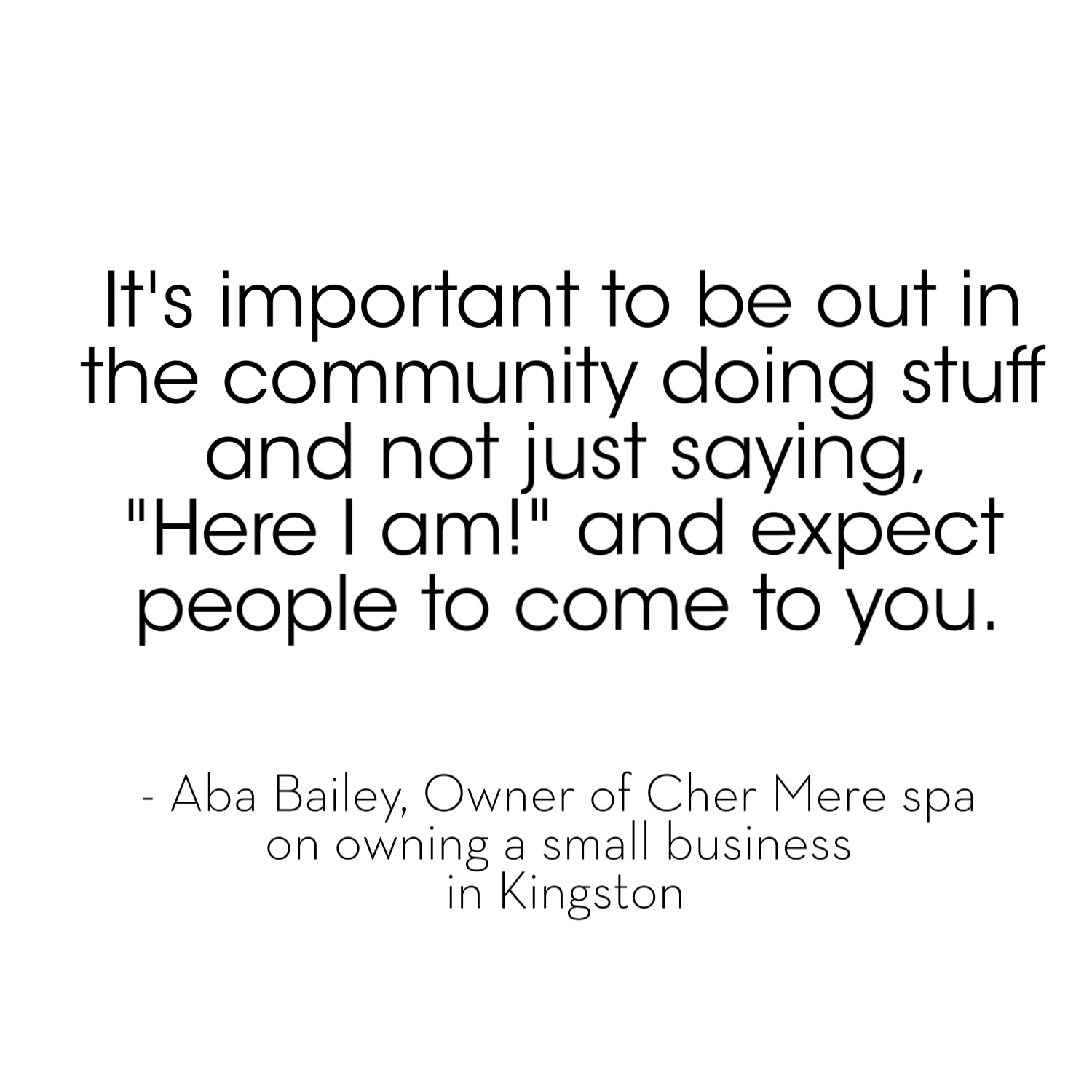 ‘Here I am!’ and expect people to come to you. It’s very much about the interactions that you have with people and making sure that those people can understand you. It’s important to be true to what you want. If we just had a spa and said, “come here and use these products” I don’t think it would work well but I think that people get that we make the products and I believe in the products and there’s something behind it and they can see that when they come in. Kingston is good for developing the skills of how to market yourself or how to get through to other people so that they can also help to market you and create a ripple effect to keep the small business going because it is all about community and it’s also about working with people. We’ve done things where you can have a girls night and have dinner next door at Atomica. It’s important to work with other businesses and reach different demographics.