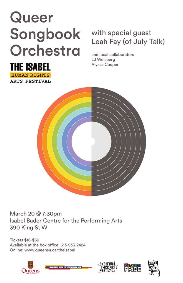 The Queer Songbook Orchestra is a special compilation of songs by Queer-identifying musicians with an ensemble arrangement. As part of the Human Rights Arts Festival in collaboration with The Skeleton Park Arts Festival, this show will be at The Isabel next Tuesday, March 20 featuring Leah Fay (July Talk) and local artists LJ Weisberg and Alyssa Cooper.
