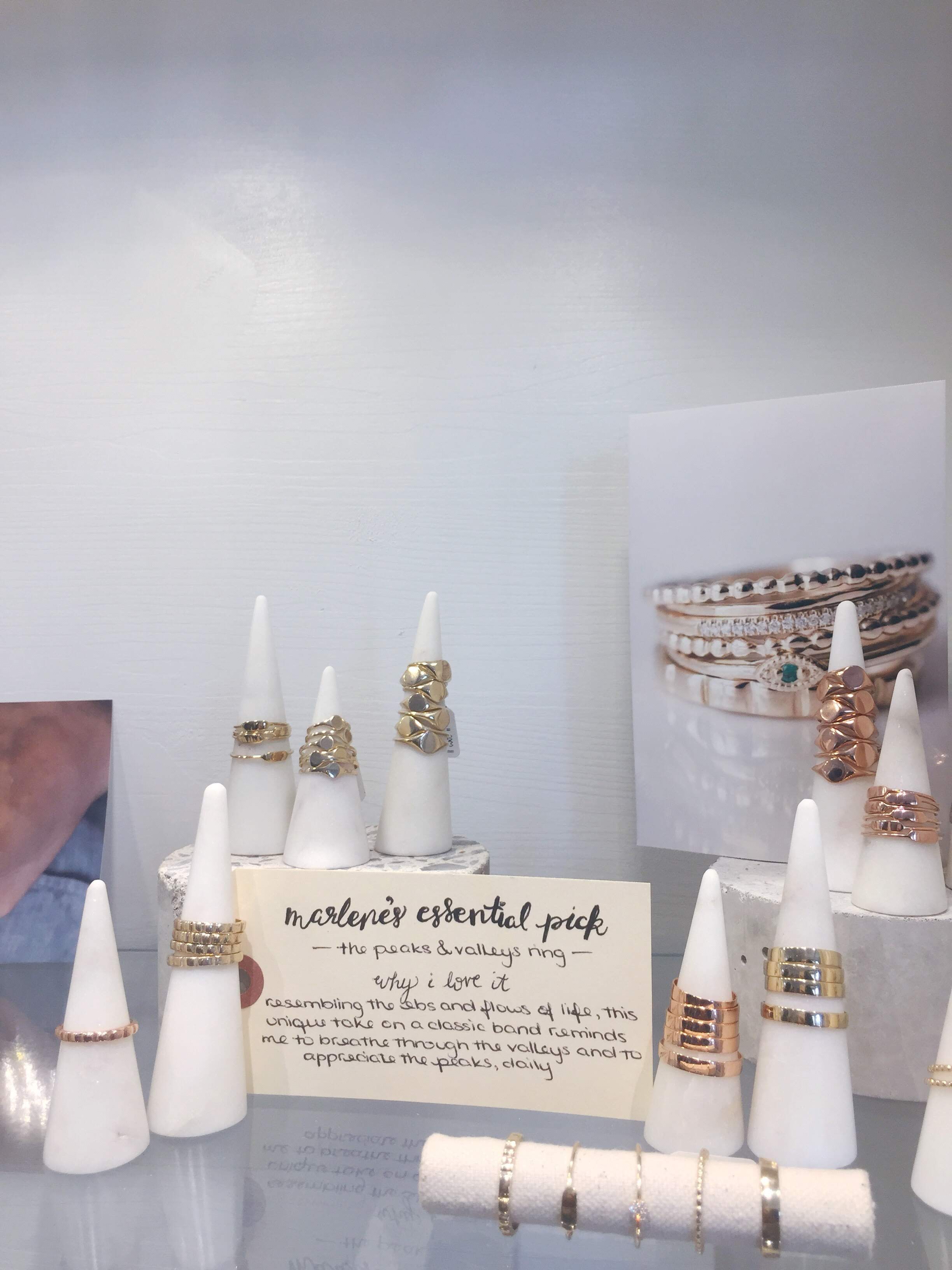 Yes, the space IS absolutely stunning. A century building on Bloomfield’s Main Street, with its intricate details beautifully preserved and light airy decor to complement. The space holds lovely one-of-kind pieces in gold, rose gold and silver accented with unique stones but it also holds a warmth that I can’t do justice through a few filtered Instagram images.