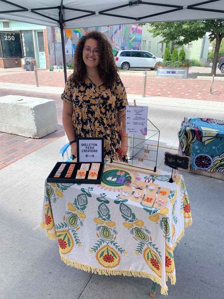 I started Skeleton Park Creations at the very end of May. Before COVID I worked as a marketing coordinator so my days were filled with something relatively creative and my nights were filled with dance classes. So, by May I had been out of a creative outlet for a while and I was feeling it. I saw polymer clay earrings online, went to Michael’s, and decided to try it on a whim. I had told myself that if it didn’t go well I would just try something else. But it did go well and here I am- in large part because of your Black Businesses in Kingston post you made in June during the BLM protests. My friend Sophie had tagged me in it and everything changed after that!
